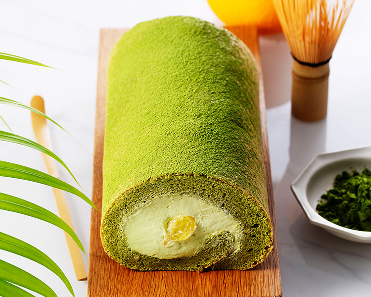 抹茶の深い香りとほろ苦さ、ホワイトチョコのやさしい甘み、甘夏のほのかな酸味が重なり合う、軽やかな後味のロールケーキです。