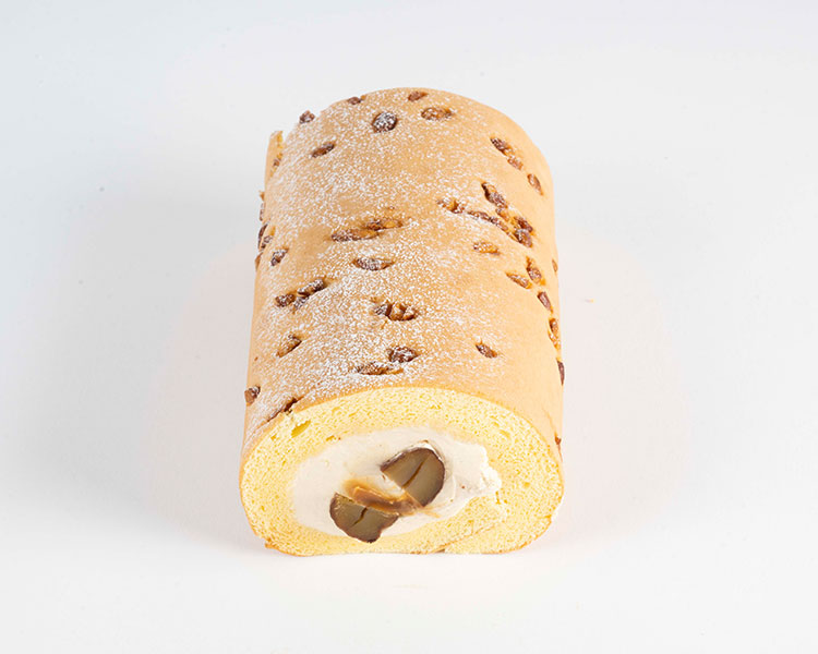 香ばしいキャラメルナッツを散りばめたロール生地で、コクのあるキャラメルクリームと、まろやかなマロンクリーム、渋皮栗付甘露煮、ほどよい塩味の塩キャラメルクリームをひと巻きにした秋限定の贅沢なロールケーキです。