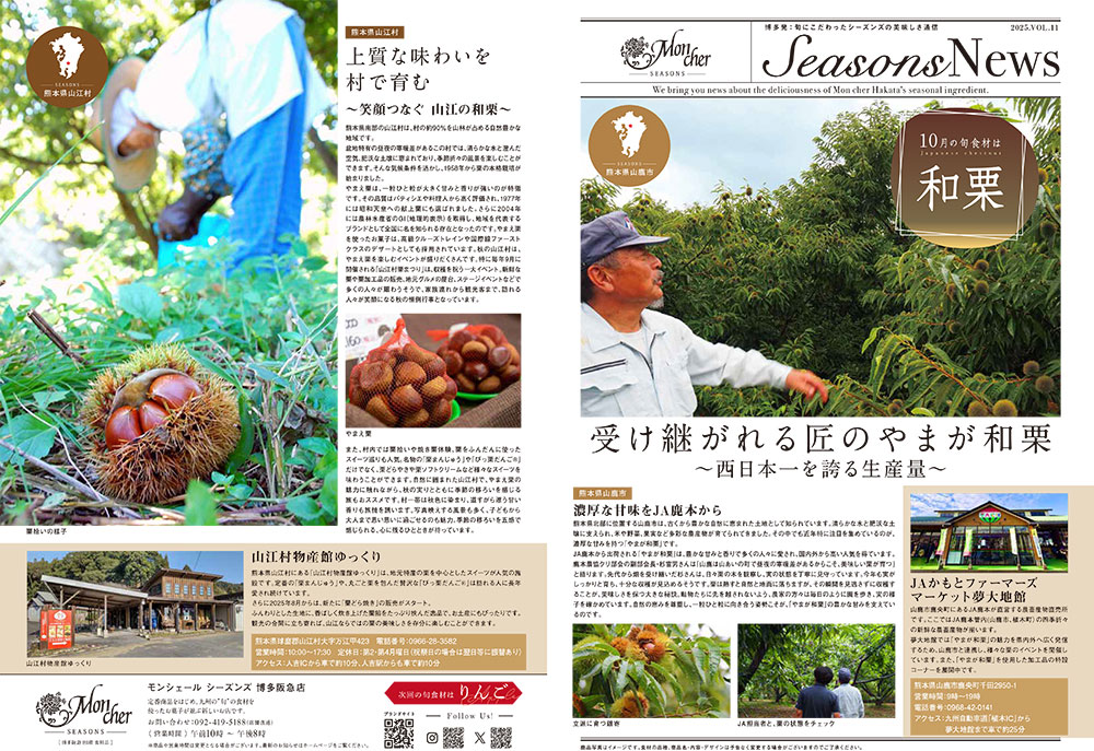 生乳のコクと香り広がる「堂島ロール」のクリームをベースにしながらも、 地元・九州で採れた旬の食材にこだわったお菓子をお届けします。 お菓子で季節の移ろいを感じ、楽しんでいただきたい…そんな想いが込められたモンシェールシーズンズ。 お近くにお越しの際には、ぜひお立ち寄りください。