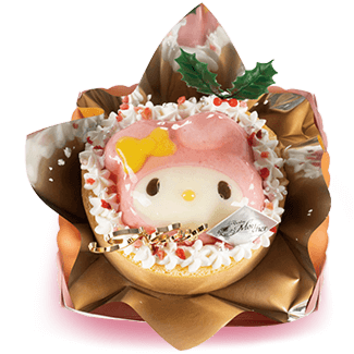 カットした堂島ロールの上にサンリオの人気キャラクター、マイメロディをかたどったベリーtムース入りのショコラムースをのせました。